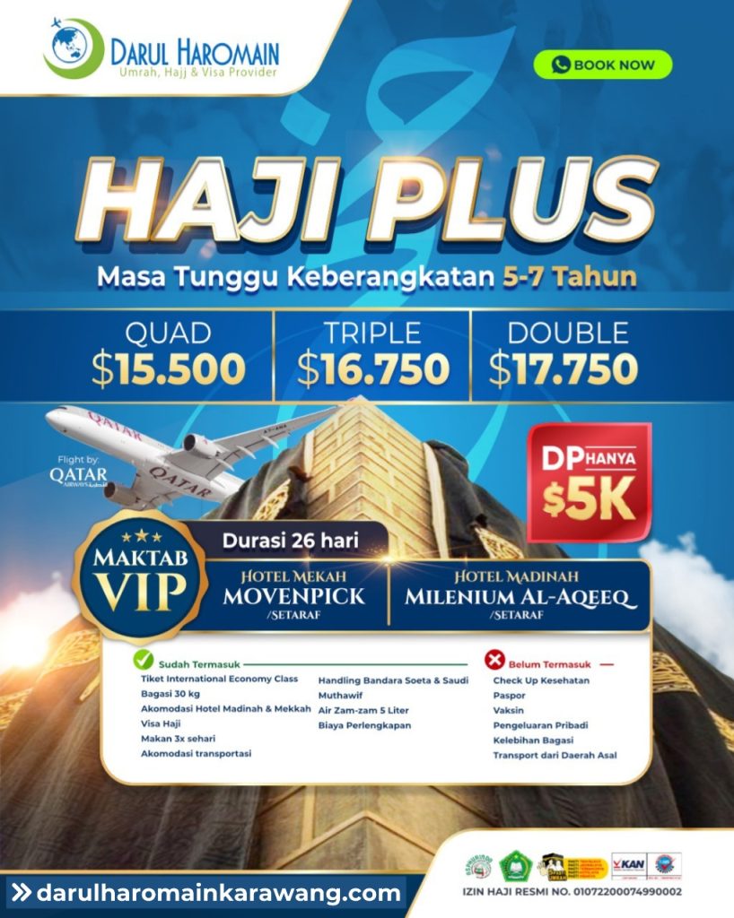 Haji adalah tamu Allah. Maka, sudah sepatutnya kita mempersiapkan diri dengan sebaik-baiknya. Dengan fasilitas terbaik, bimbingan yang berpengalaman, serta waktu tunggu yang lebih singkat, insyaaAllah perjalanan ibadah Anda akan lebih terarah, tenang, dan penuh keberkahan.
