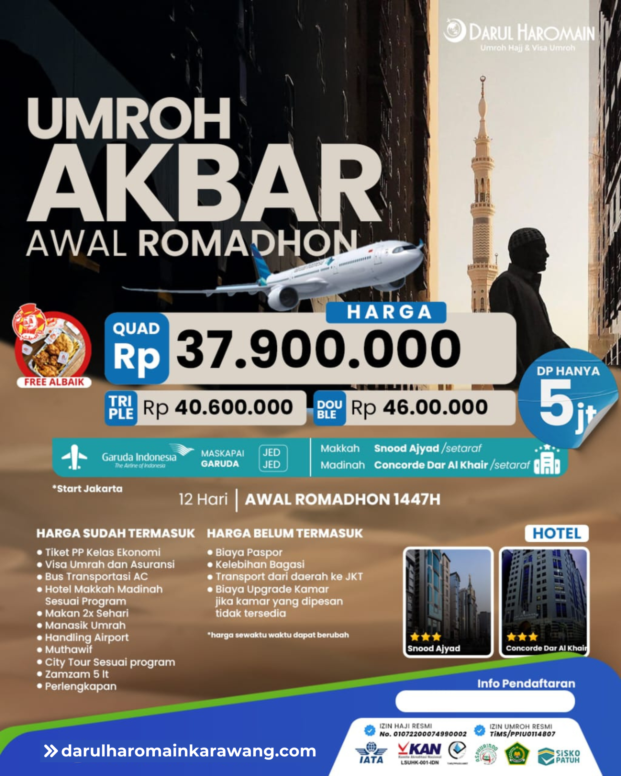 Cukup dengan DP Rp 5 Juta untuk mengamankan kursi keberangkatan Anda.