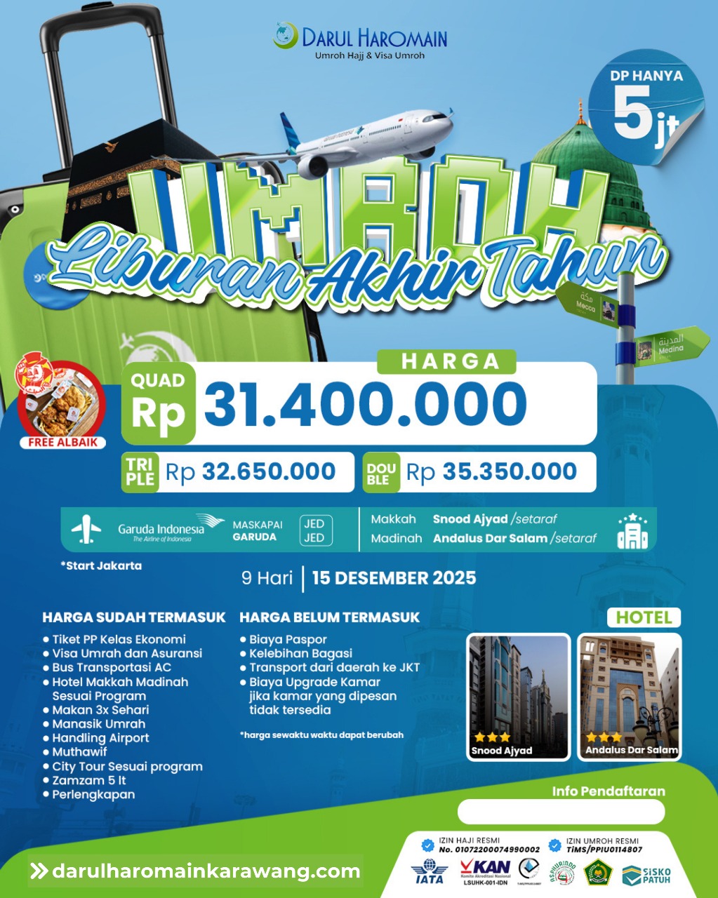 Cukup dengan DP Rp 5 Juta untuk mengamankan kursi keberangkatan Anda.